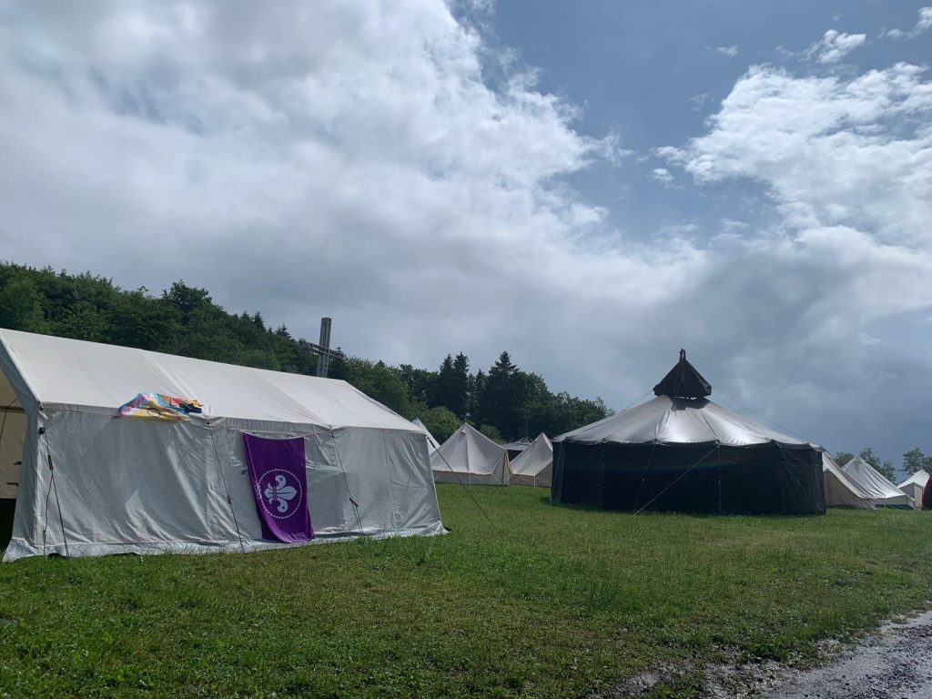 Der Samstag hielt ein abwechslungsreiches Programm bereit – und leider auch eine düstere Wettervorhersage. Nachdem wir Energieriegel gebacken und Haltsuchknoten gebastelt hatten, öffnete der Himmel alle Schleusen. Ein regelrechter „Jahrhundertregen“ prasselte auf uns herab. Zum Glück fanden wir Zuflucht in der Nahost-Jurte im Internationalen Dorf. Dort berichteten Pfadfinder aus dem Nahen Osten von ihrer Arbeit, von kulturellem Austausch und davon, wie Pfadfinderfreundschaften Brücken über Konflikte hinweg schlagen können. Ein beeindruckendes Erlebnis!